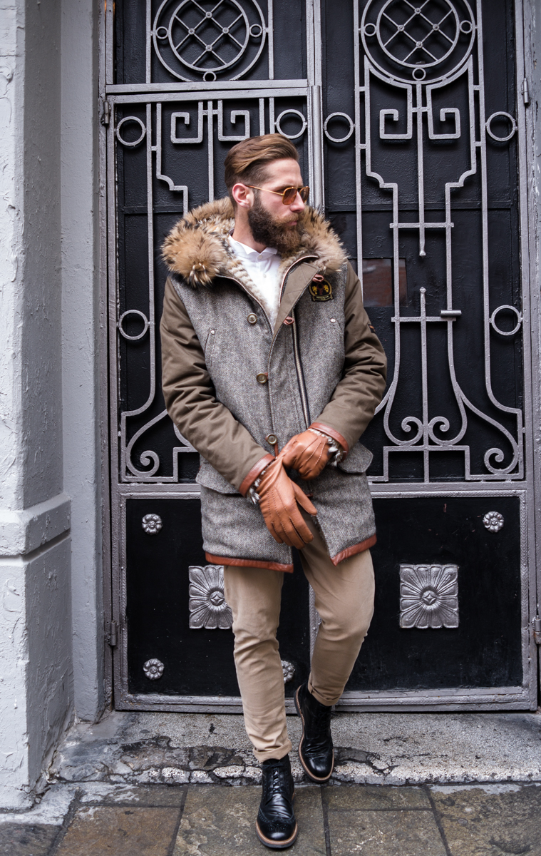 The men's collection feature an overall military winter ispiration with embroidered details.